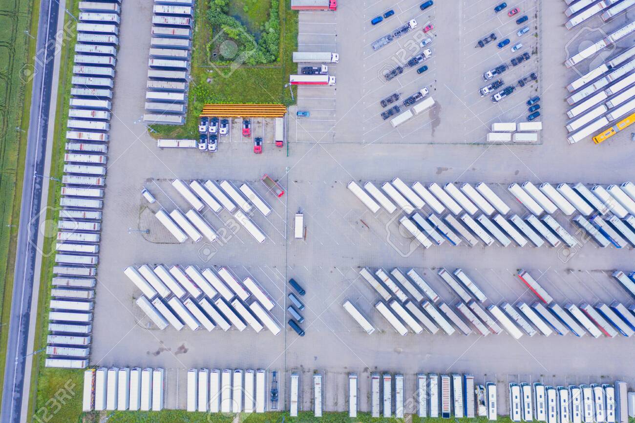 Lots Of Freight Trailers Cars Are In Several Rows Truck Parking Aerial View Vertically Down Stock Photo Picture And Royalty Free Image Image 150429909